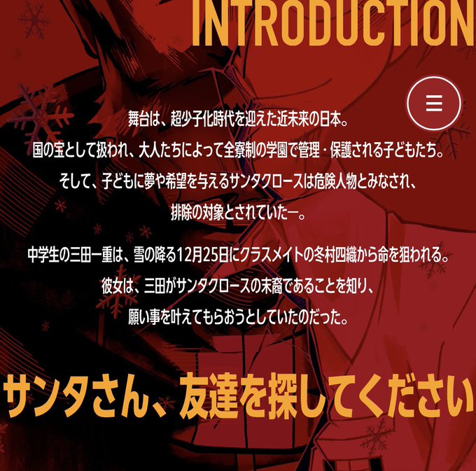 サンタクロースが危険人物キャラの顔が個性… SARUさん×板垣巴留先生原作って時点で… 映像も音も心地よく不穏で、完成度が高すぎ… BEASTARSも好きやけどこっちもしっ… 板垣巴留原作のチャンピオン漫画。霜山朋久… 自爆して周りも犠牲にする気だったくせに「… 思ってたサンタ姿じゃなかった笑もっとサン… サスペンスなのかコメディなのか毒っ気満載… 慌てん坊のサンタクロース殺意を好意と勘違… クラスメイトにナイフを振り回す女の目的は…